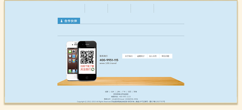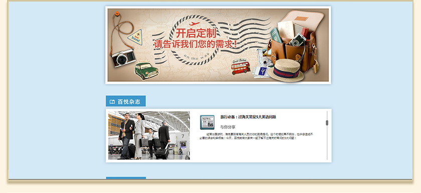 Project Description 百悦逸游于2012年初由二位资深的旅行家创办,是成都传媒集团旗下成都新闻国际旅行社有限公司的高端旅游品牌,总部位于成都高新区天府大道中段美年广场。在百悦逸游成立之前,创始团队亲自到全球三十多个国家实地考察,带着第一手的资讯和执着的信念创立了中国西部第一家真正意义上的私人定制旅行机构。百悦的旅行不是跟团挤大巴,不是十天去十个国家,更不是没完没了的... Official website address 塔城http://www.100.travel I want to share